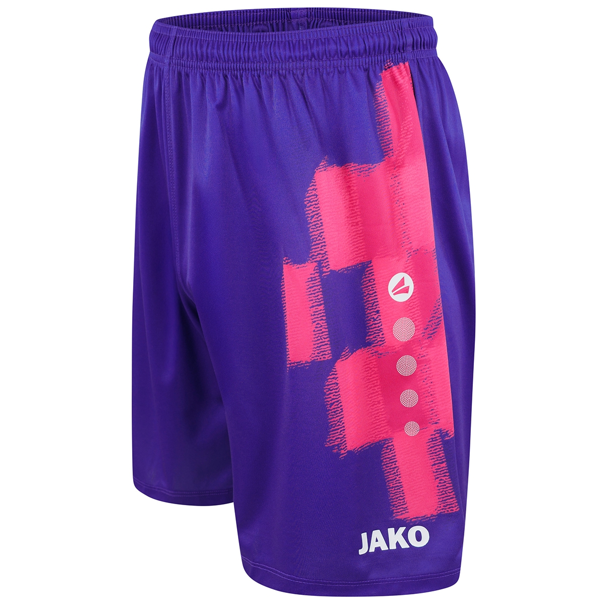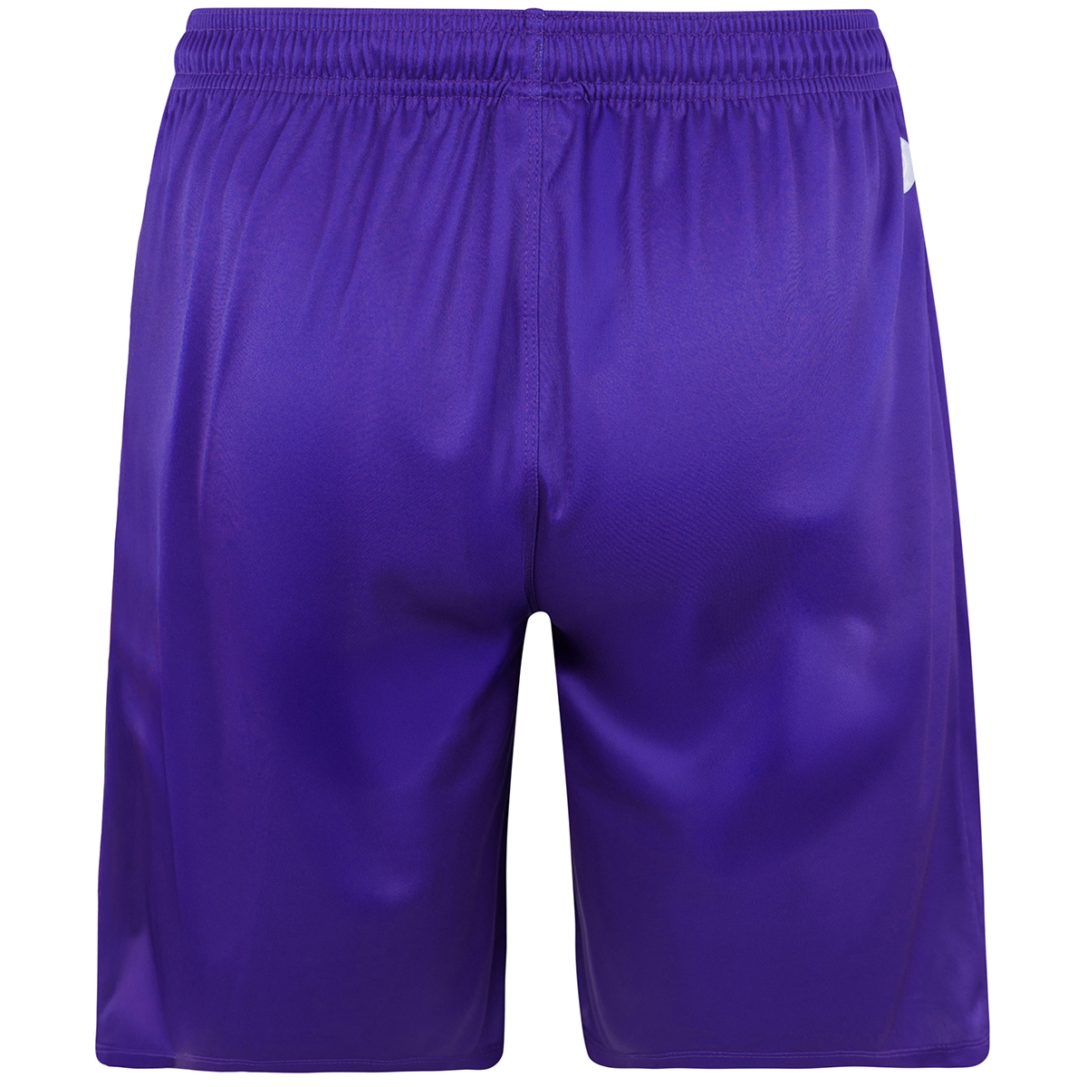 Die Auswärtshose 2025/26 für Kinder erscheint in einem lila Grunddesign, während auf dem linken Bein das auffällige karierte Muster in Pink wieder aufgegriffen wird – ein stilvoller Bezug zum Trikot und ein echter Blickfang auf dem Spielfeld.