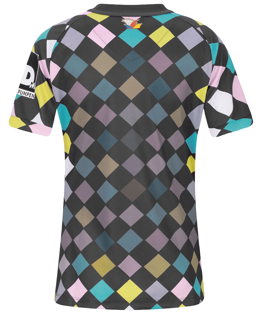 In exklusiver Sammlerbox: Das limitierte Mainz 05 Fastnachtstrikot 25/26 für Damen hatte den Schwellkopp Lisbeth als Vorbild, ganz in dem Sinne, die Geschichte der letzten Saison fortzusetzen, in der Lisbeth's Mann Karlchen als Inspiration diente. Der weiße JAKO Schriftzug und das weiße Kömmerling Logo fügen sich perfekt in das bunt-karierte Trikot ein. Kleine, aber feine Akzente wie die Narrenkappe sowie die innen vierfarbbunt gestalteten Kragen- und Ärmelbünde runden das närrische Trikot ab. Der Rückenflock ist in einer besonderen Fastnachtsschriftart, welche an Luftschlangen erinnert.
