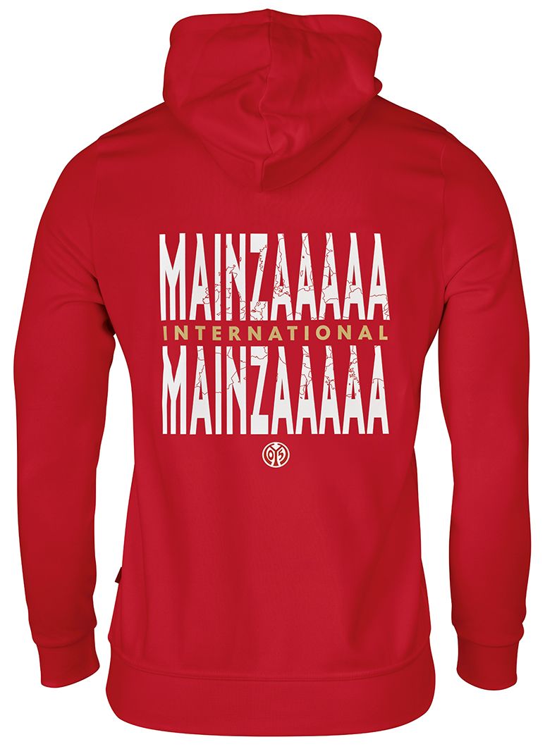 Der rote Unisex-Hoodie mit „Mainzaaaaa International“-Schriftzug ist aus angenehm weichem Material gefertigt und eignet sich ideal für Alltag und Freizeit. Klassischer Schnitt, sportlicher Look und klare Botschaft für alle Mainz 05 Fans.
