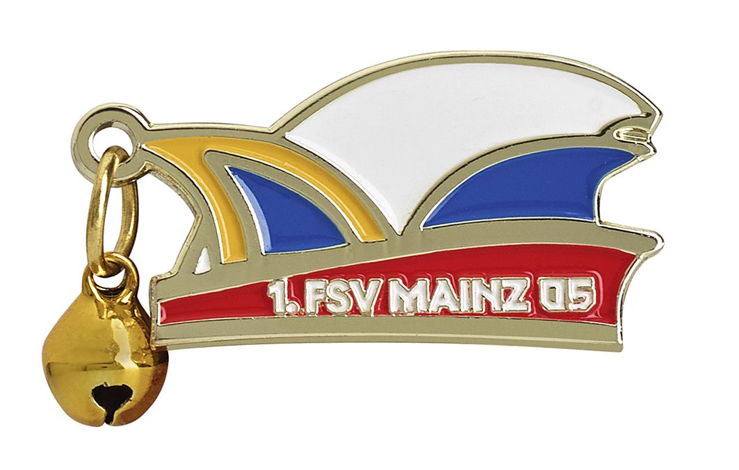 Der Pin Narrenkappe für alle Fastnachter ist in den Mainzer Fastnachtsfarben gehalten und mit Schriftzug des 1. FSV Mainz 05 veredelt.