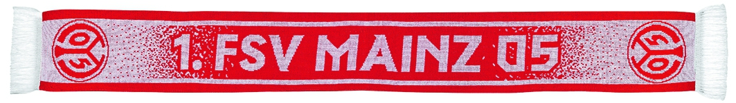 Roter Fanschal mit weißem Schriftzug und Statement: "Auf gehts Mainzer Kämpfen und Siegen" auf der einen Seite und "1. FSV Mainz 05" auf der anderen Seite. Auf beiden Seiten ist jeweils das Mainz 05-Logo an den Enden angebracht.