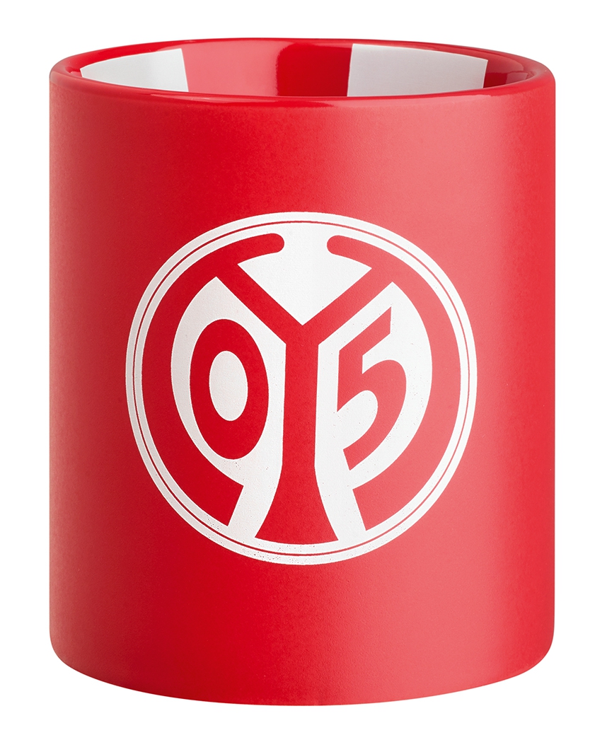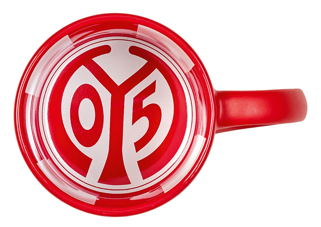 Die rote Tasse hat nicht nur ein Logo auf der Front-Seite, sondern ist auch mit dem Mainz 05-Logo in der Innenseite verziert.